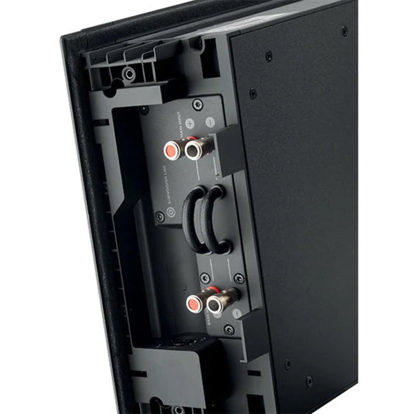 The loudspeaker integrates discreetly into walls, vertically or horizontally, thanks to its extremely precise design and ready-to-paint magnetic grille.